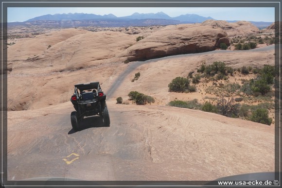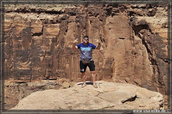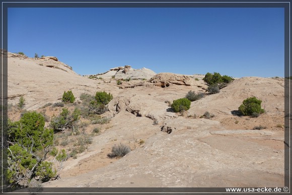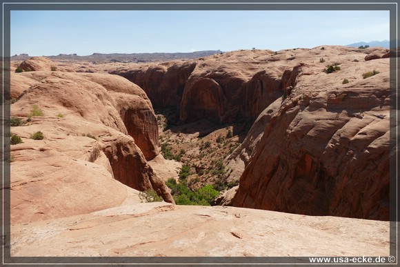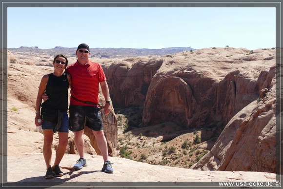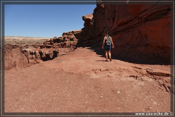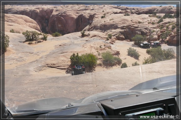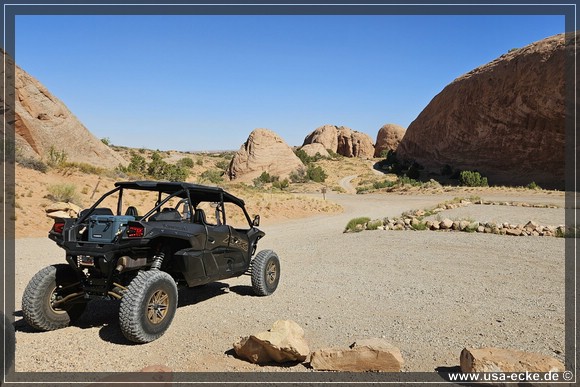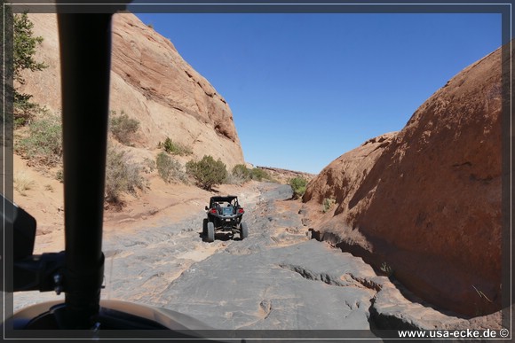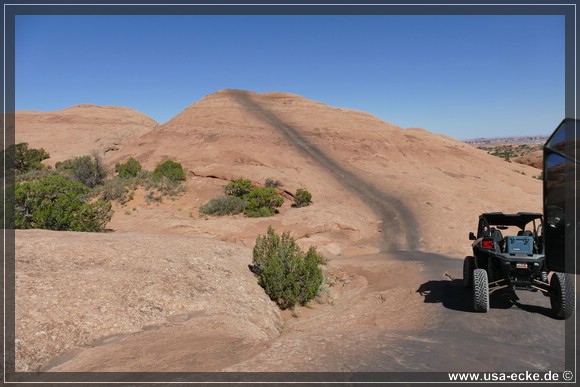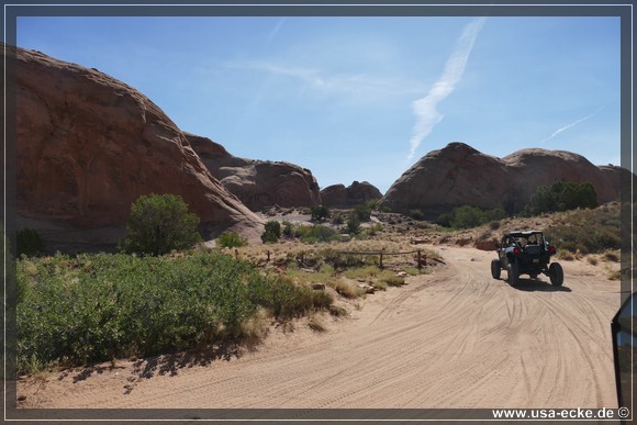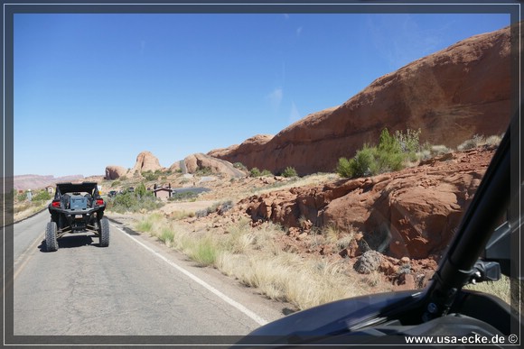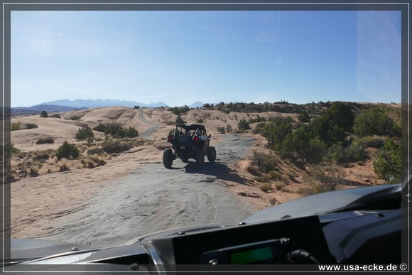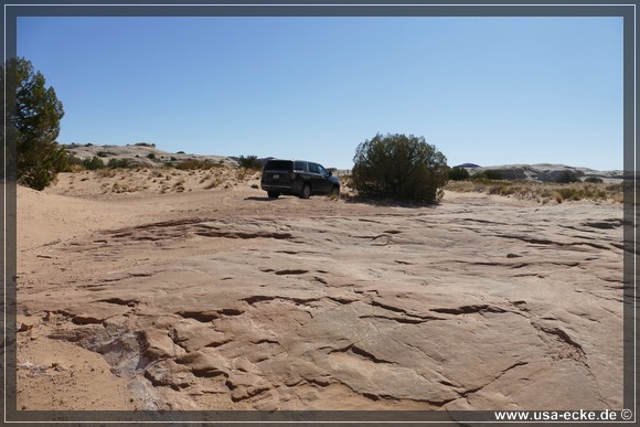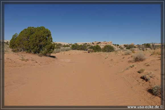 Irgendwann machen wir kehrt, laufen zum Auto und fahren zurueck nach Moab. Aber - Spring Canyon Buttom bleibt auf unserer Bucket List. Vielleicht klappt es ja doch noch, man muesste nur mal wieder einen Jeep ausleihen... |
