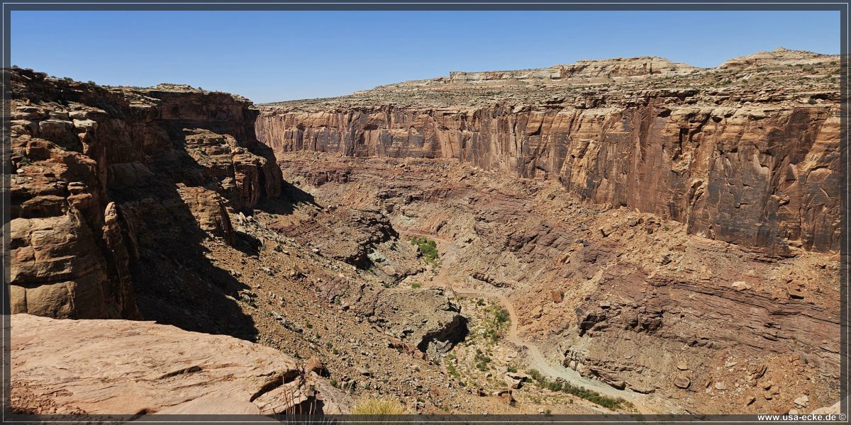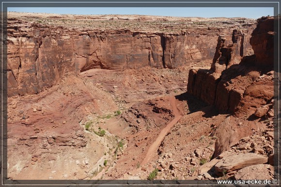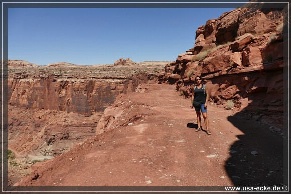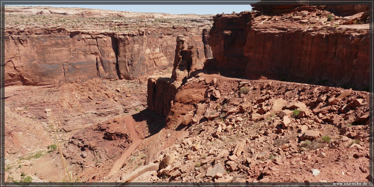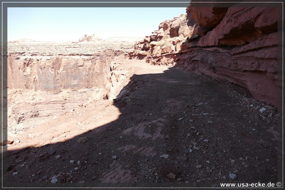 Die weitere Road ist extrem abschuessig, fast noch heftiger als der Shafer Trail. Das waere mal wirklich ne coole Sache mit einem Jeep, wenn der erste Bereich etwas hergerichtet werden wuerde. |