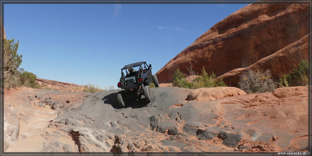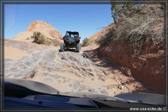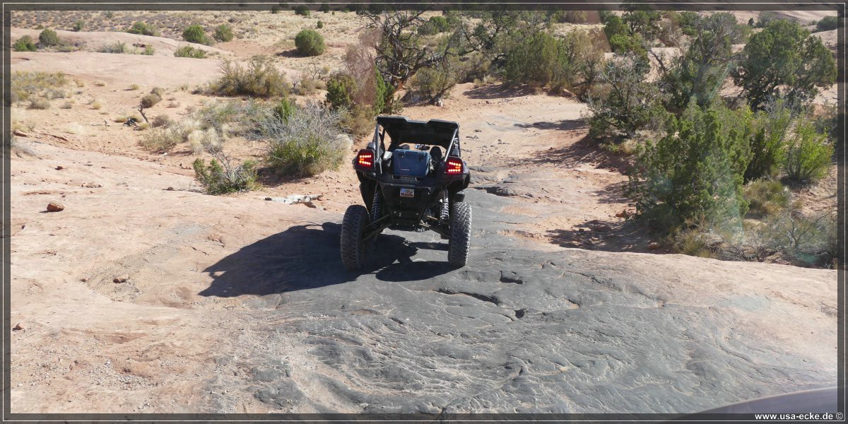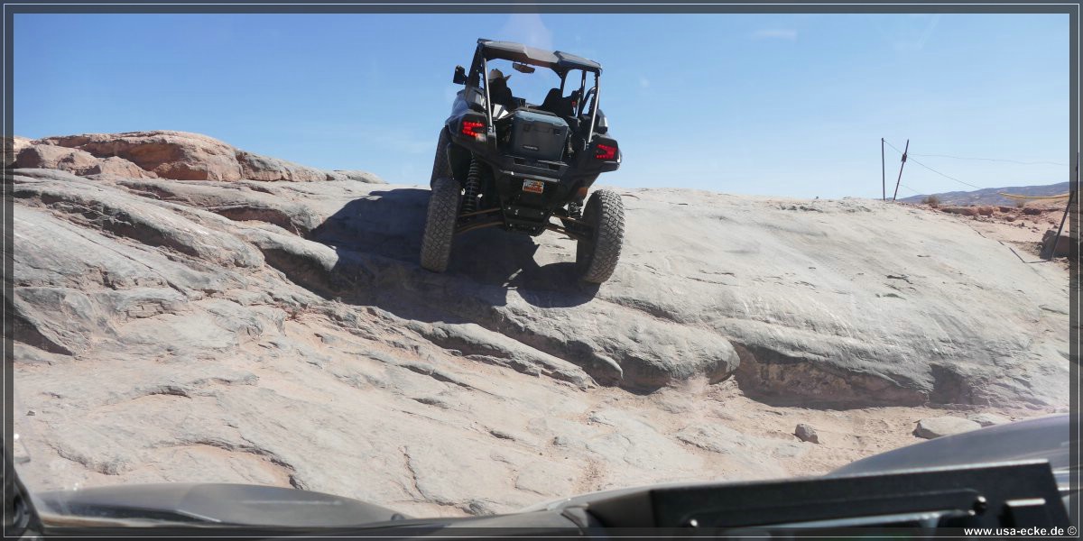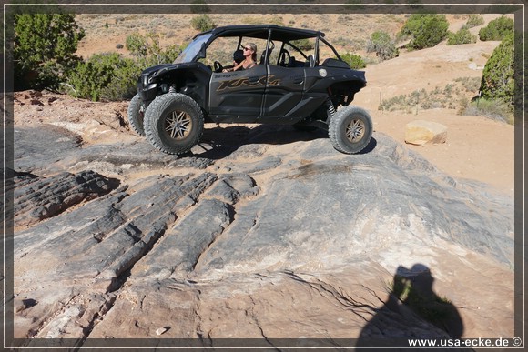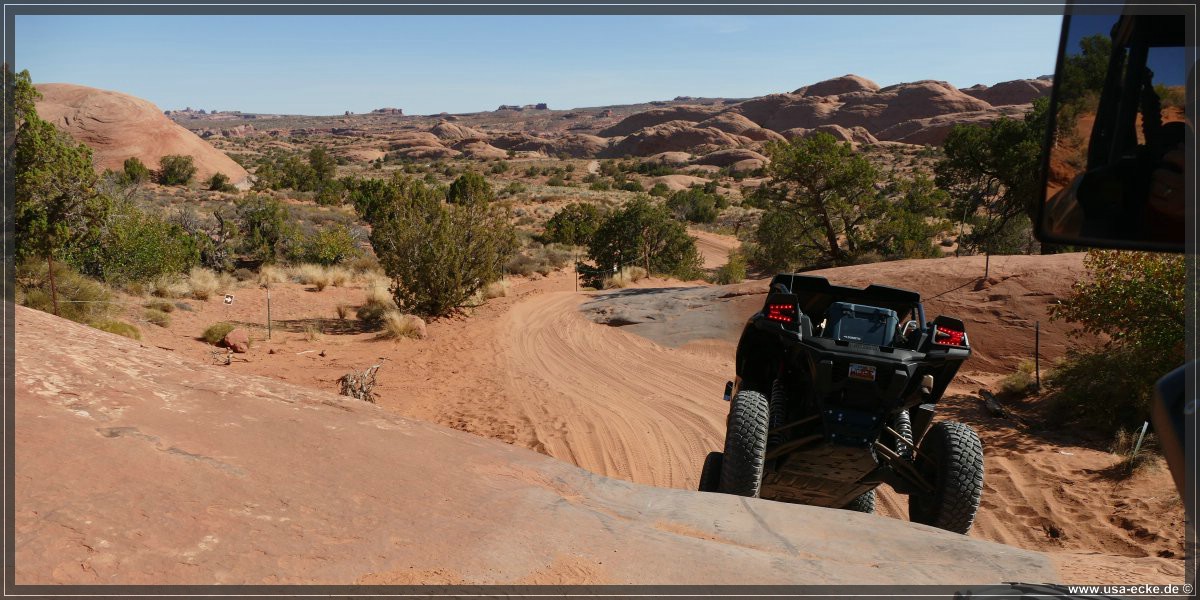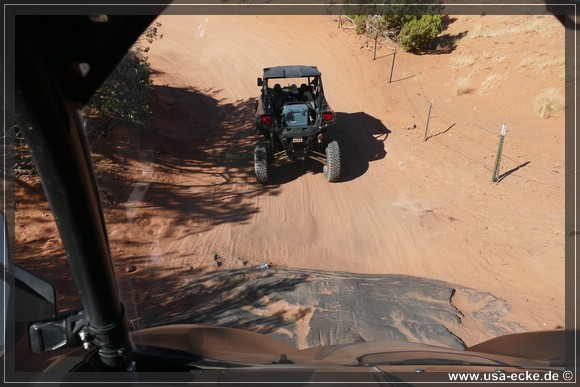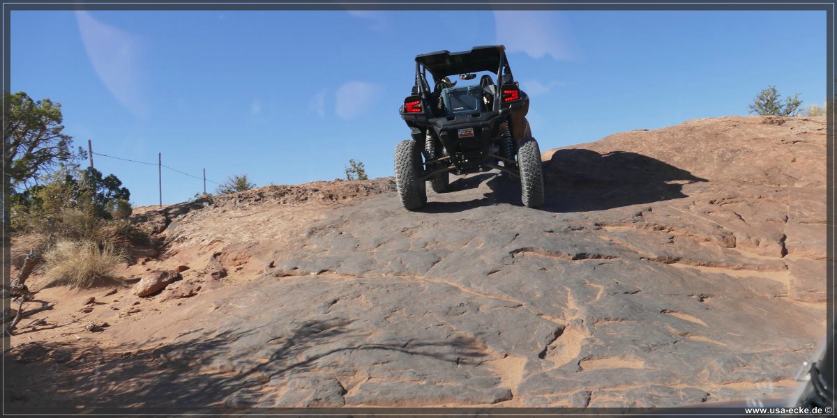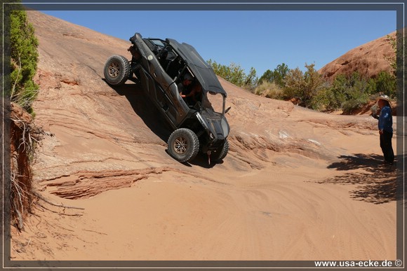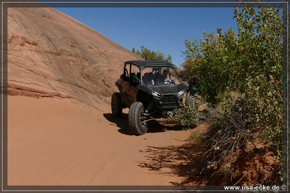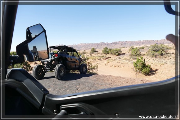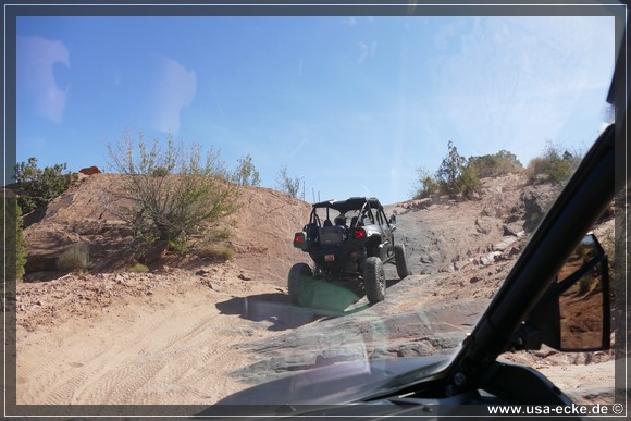 Die heutige Reservierung mit Outlaw Adventure Tours beinhaltet aber nicht nur Hells Revenge, auch Fins 'N' Things ist mit dabei. Beides sind stellenweise heftige Strecken, die wir nicht mal mit einem Jeep fahren wuerden, aber mit einem UTV ist es einfach nur klasse und macht riesig Spass. |