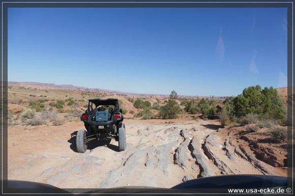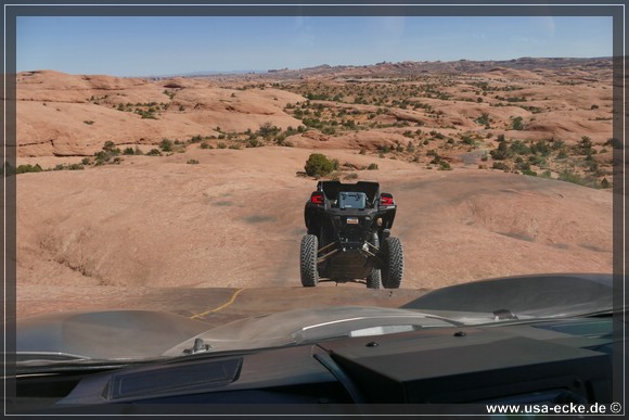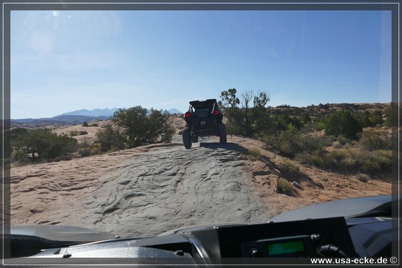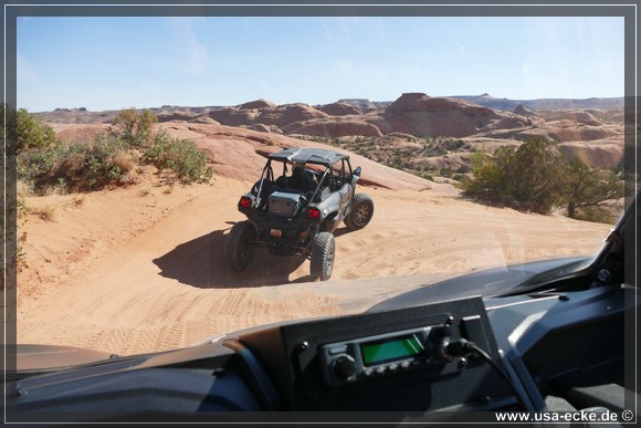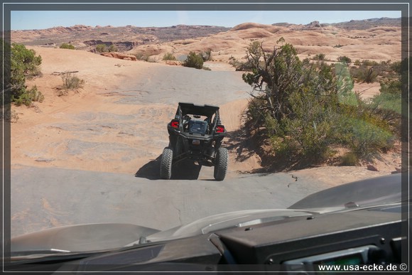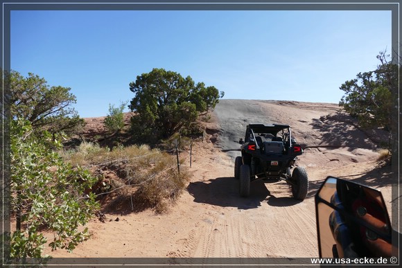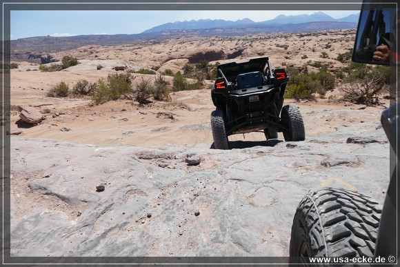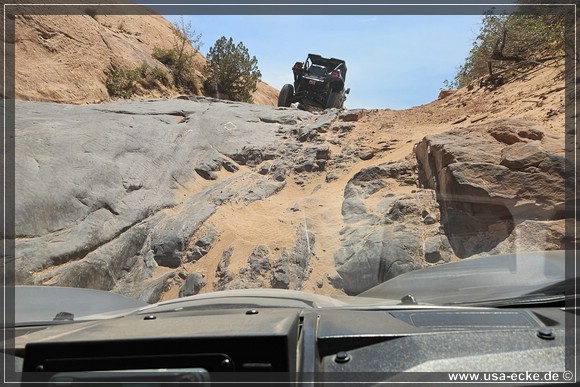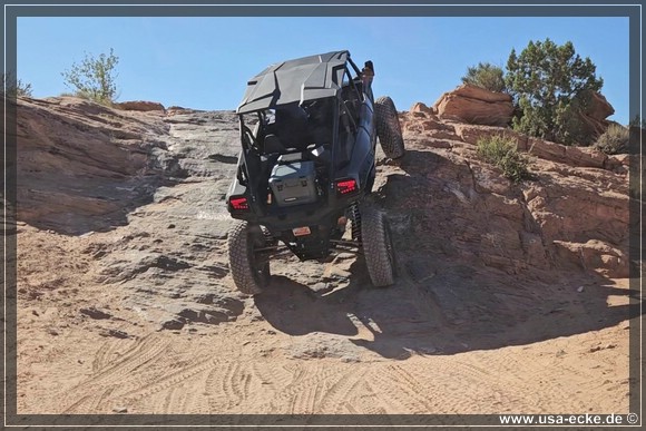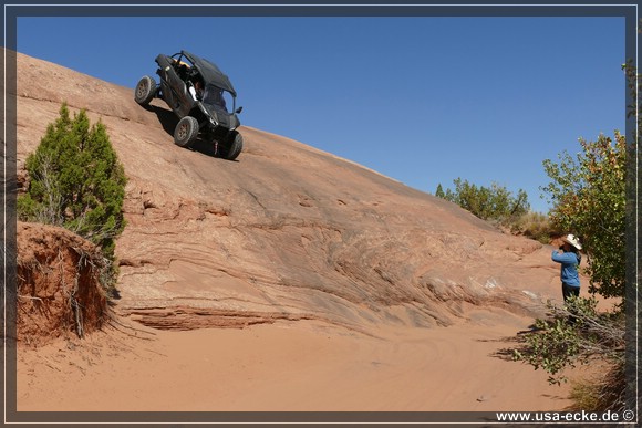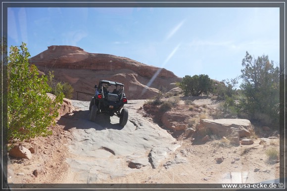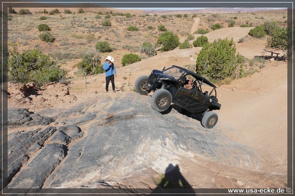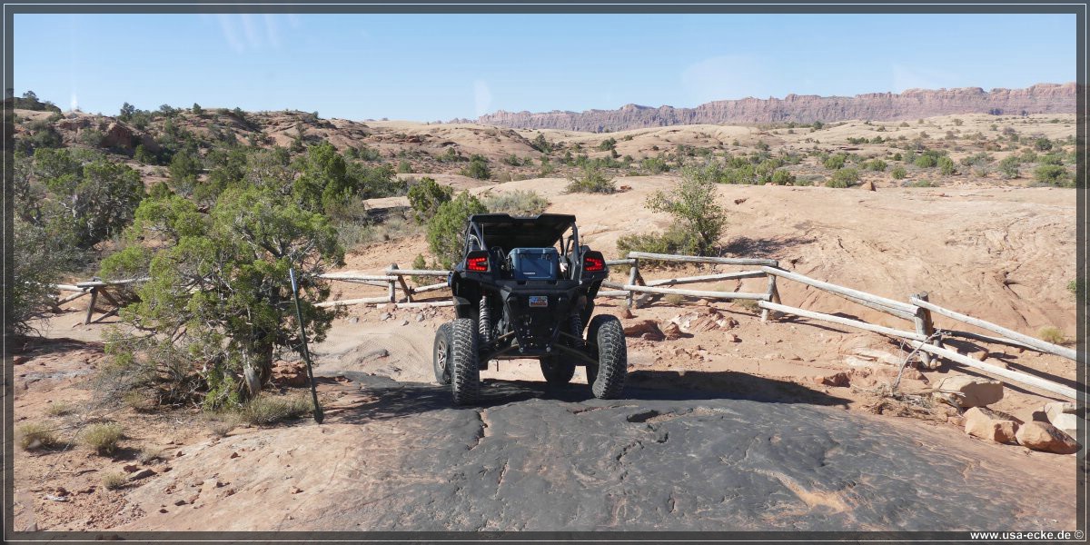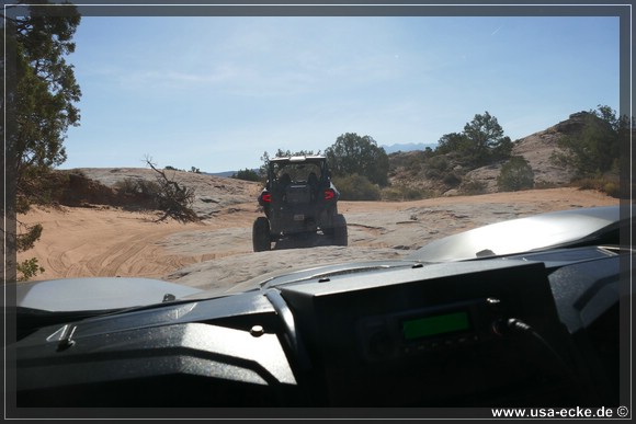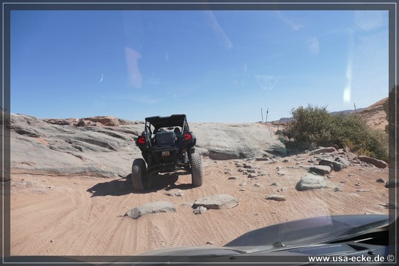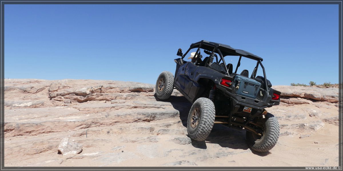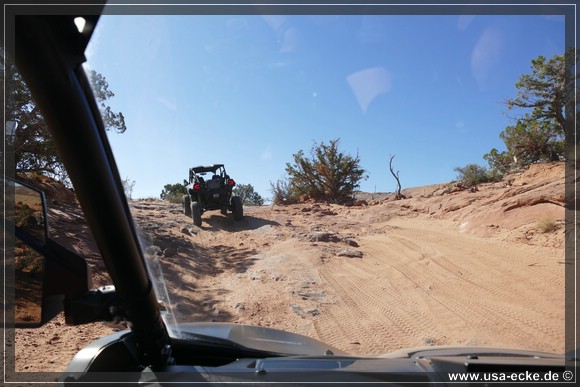 Die heutige Reservierung mit Outlaw Adventure Tours beinhaltet aber nicht nur Hells Revenge, auch Fins 'N' Things ist mit dabei. Beides sind stellenweise heftige Strecken, die wir nicht mal mit einem Jeep fahren wuerden, aber mit einem UTV ist es einfach nur klasse und macht riesig Spass. |