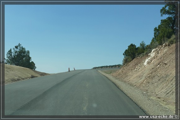 Wir haben wirklich Glueck, denn unter der Woche wird die La Sal Road tagsueber vollstaendig gesperrt. Nur am Abend und am Wochenende ist sie fuer den Verkehr freigegeben. Der groesste Teil der Strecke hat bereits eine neue Teerschicht erhalten, allerdings fehlt ueberall noch die Markierung. Es ist kaum was los, die meiste Zeit den Berg hinauf sind wir ganz alleine unterwegs. |