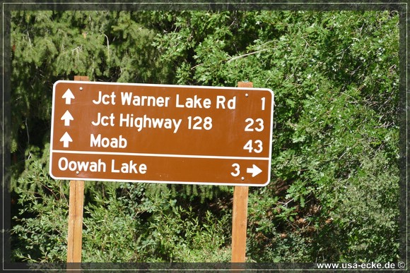 Unser Ziel heute ist der Geyser Pass, der ueber die La Sal Mountain Loop Road zu erreichen ist. Eigentlich wollten wir den gesamten Loop fahren und verschiedene Aussichtspunkte anfahren, doch unser neu gebuchtes Hotel mit dem Wahnsinns-Pool hat uns da einen Strich durch die Rechnung gemacht. Fuer die Fahrt auf dem Loop haetten wir heute Mittag die Poolpause nicht einlegen duerfen.