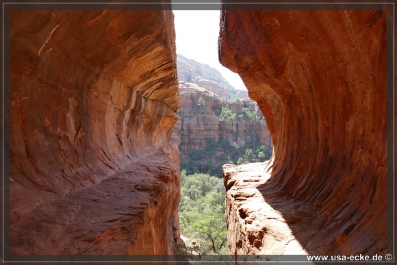 Am Ende des Trails muss man ein wenig klettern, der Aufstieg bis zur Cave ist jedoch relativ einfach. Fuer uns ein absolut lohnenswertes Ziel hier in Sedona und auch in der Sommerhitze leicht zu erreichen. |