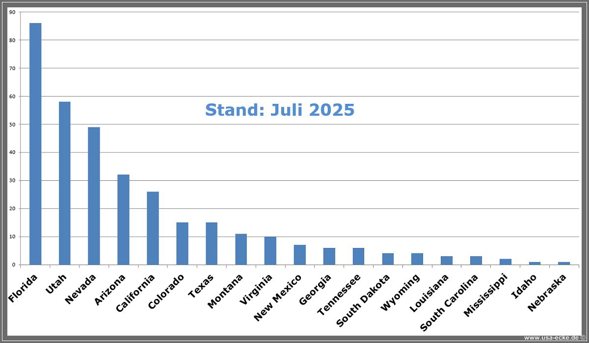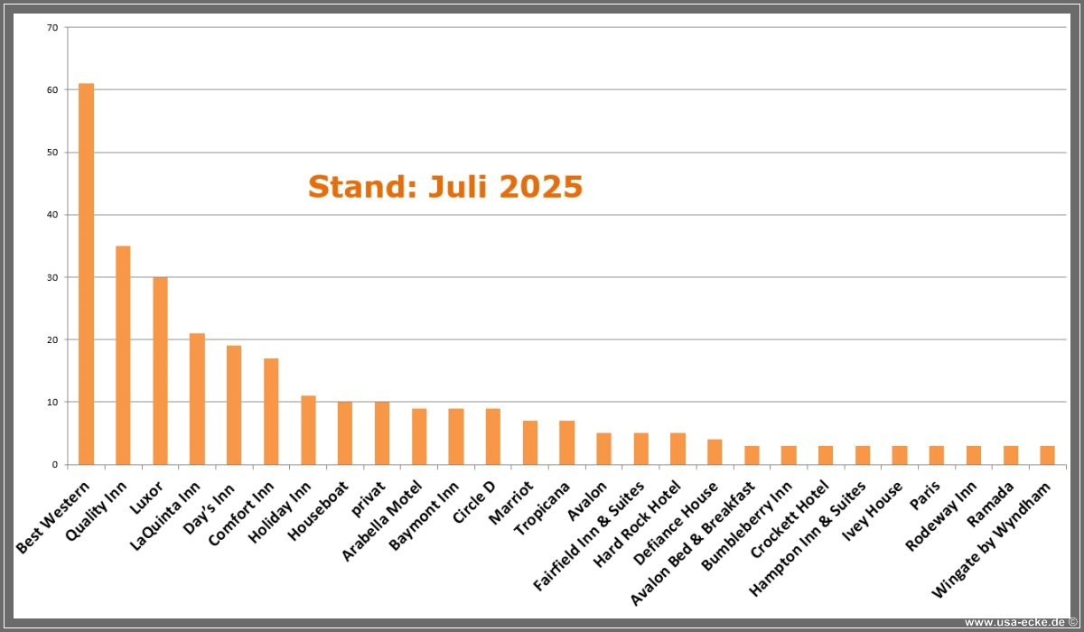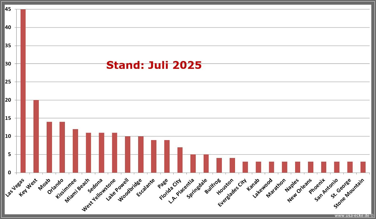 Hier also eine kleine Statistik zu unseren bisherigen gemeinsamen USA-Reisen. |