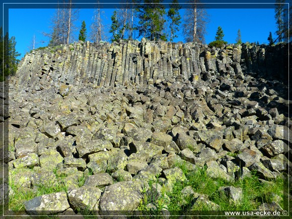Sheepeater Cliff: Zwischen Roaring Mountain und den Rustic Falls befindet sich auch das Sheepeater Cliff. Die Klippen bestehen aus saeulenartig angeordnetem Basaltgestein und sind absolut beeindruckend.