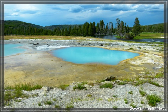 Zwei Meilen noerdlich des Upper Geyser Basin bzw. vier Meilen suedlich des Midway Geyser Basin liegt das Biscuit Basin.