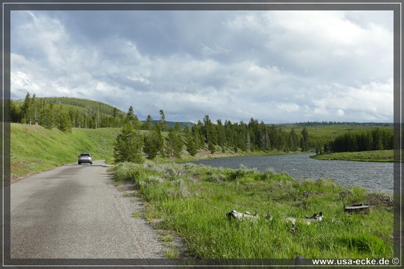 Riverside Drive: Die Einbahnstrasse zwischen West Yellowstone und Madison Junction fuehrt direkt am Madison River entlang. Die Chancen, hier Wildlife zu sehen, sind gar nicht schlecht, aber auch ohne Tiere kann man die landschaftlich schoene Teerstrasse auf dem Weg nach West Yellowstone ruhig mitnehmen. |