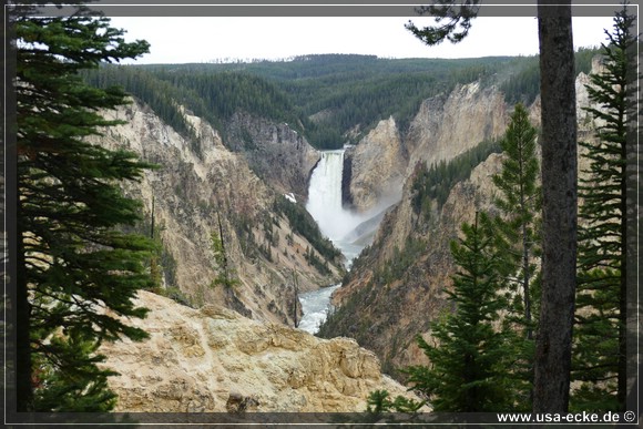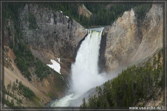 Noch ein kleines Stueck weiter suedlich am Tower General Store beginnt ein kurzer Trail zum Tower Fall Overlook. Der Ausblick auf den Wasserfall ist wirklich klasse. |