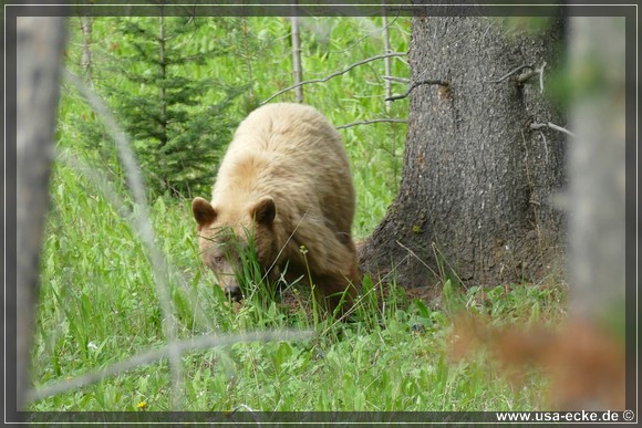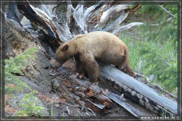 Die Schwarzbaeren hier werden uebrigens auch ganz gerne mal mit Grizzlys verwechselt, denn sie koennen ein ganz aehnliches, zimtbraunes Fell wie die deutlich groesseren Grizzly Baeren haben.