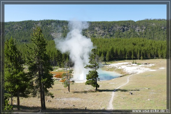 Imperial Geyser: Folgt man dem Fairy Falls Trailhead nach dem Wasserfall fuer weitere 1,2 Kilometer, erreicht man den wunderschoenen Imperial Geyser.