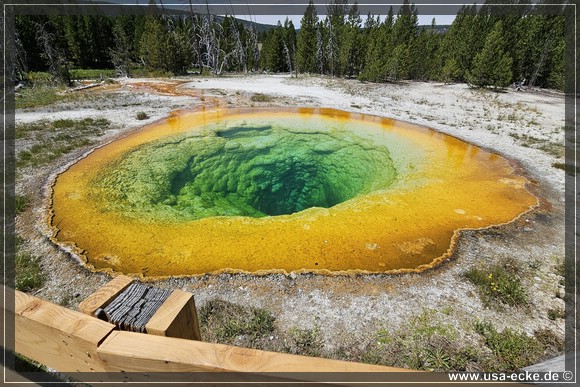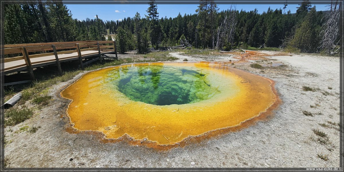 Bei einem Besuch des Yellowstone National Parks darf dieses Becken auf keinen Fall fehlen, denn der Emerald Pool, der Rainbow Pool und der Sunset Lake sind absolute Highlights im Park.