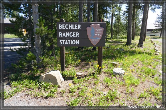 Bechler Ranger Station: Die Bechler Ranger Station ist die mit Abstand abgelegenste Ranger Station im gesamten Yellowstone National Park. Der Bereich rund um Bechler gilt noch immer als Geheimtipp fuer Wanderungen ohne Massentourismus, denn aktuell besuchen die Bechler Area selbst an guten Tagen maximal dreissig Touristen pro Tag. Da auch dieser Teil des National Parks nur in den Sommermonaten zugaenglich ist, sind es jaehrlich nicht mehr als etwa 3.000 Besucher hier an der Bechler Ranger Station. Das ist wirklich gar nichts im Vergleich zu den vier bis fuenf Millionen Besuchern im Hauptteil des Parks.