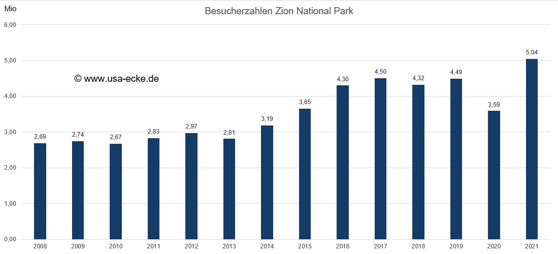 Bus Stopps | Zion Valley | Passtrasse | Kolob Canyons | Kolob Terrace | Map | Besucherzahlen |