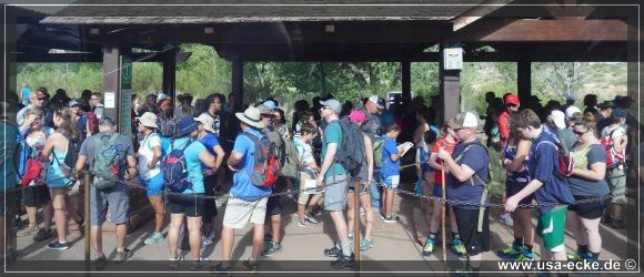 Man braucht Geduld, bis man einen freien Platz ergattert. Es kann durchaus sinnvoll sein, gleich von Springdale aus den Bus zu nehmen.